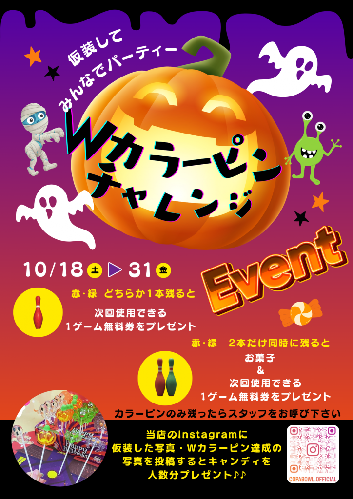 期間中ハロウィンの仮装をした写真やWカラーピン達成の写真を当店のInstagramに投稿させて頂くとキャンディをプレゼントしちゃいます!