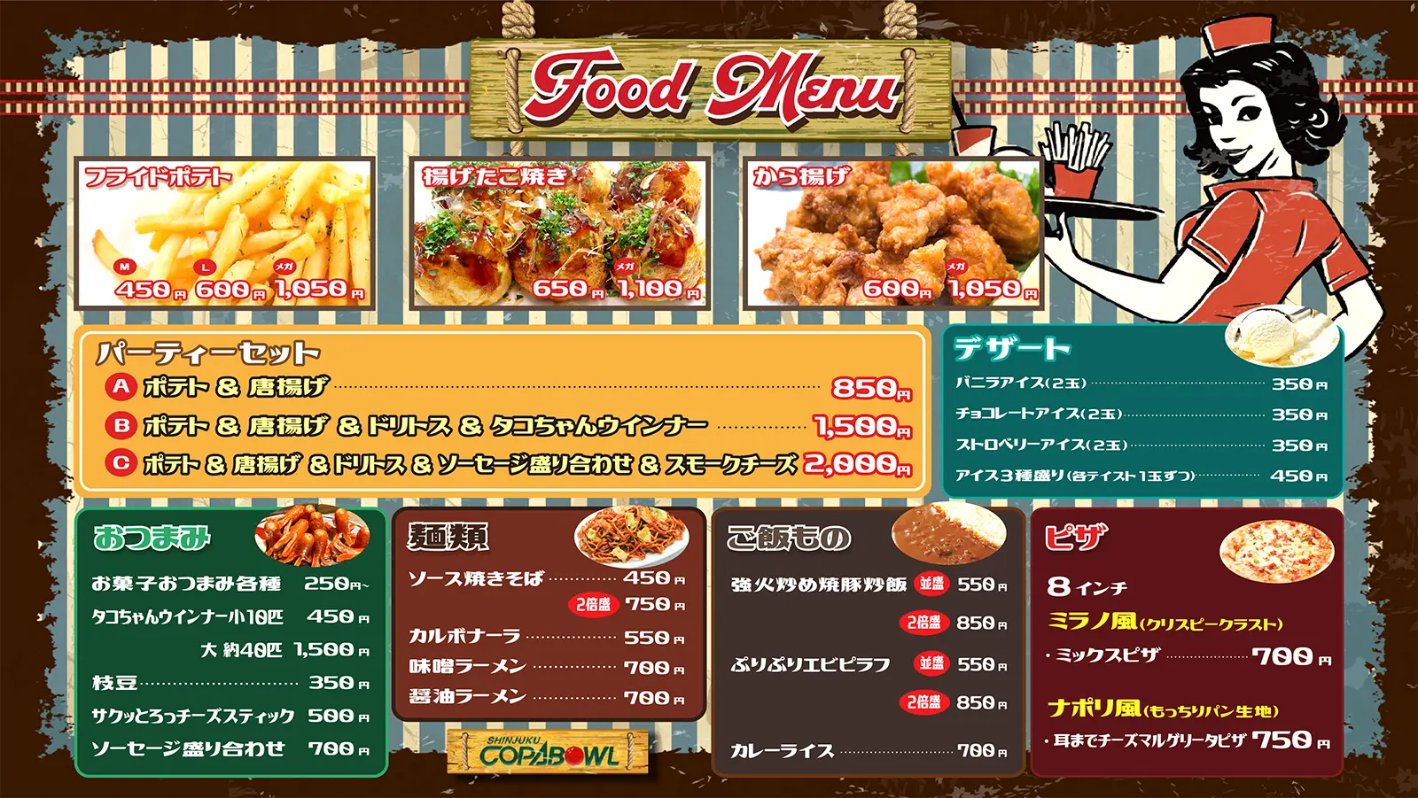 4Fフードコーナーには、ボウリングの合間に楽しめる本格メニューが揃っています。