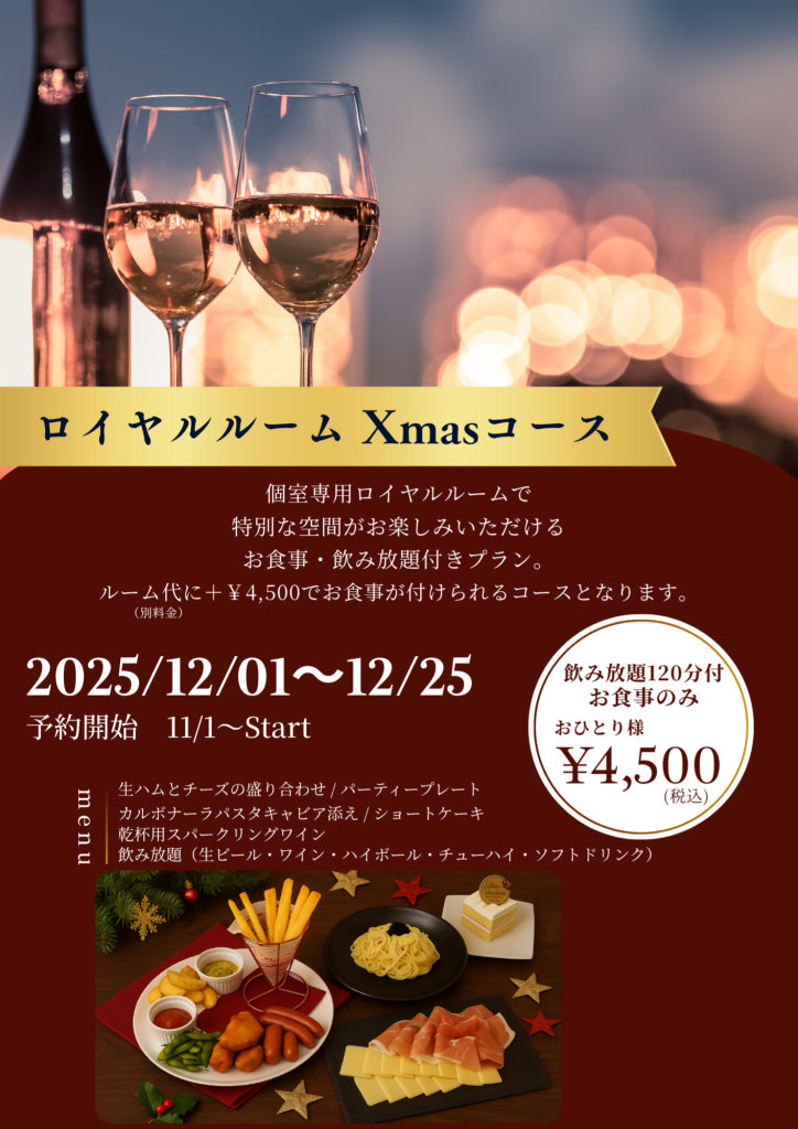 ロイヤルルームXmasコース予約承り中